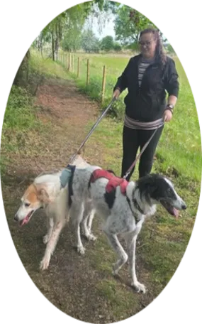 I work with their instincts, not against them, using kind, natural principles that create trust and calm. It's not about dominance or bribery, just respectful, real-life communication that makes sense to both of you. In short, I translate Greyhound into human.